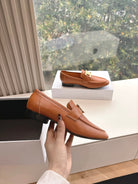 CELINE Buckle Triomphe Loafers Golden Leather