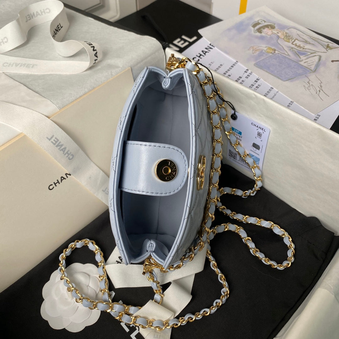 24p clutch with chain 19cm turquoise blue lambskin