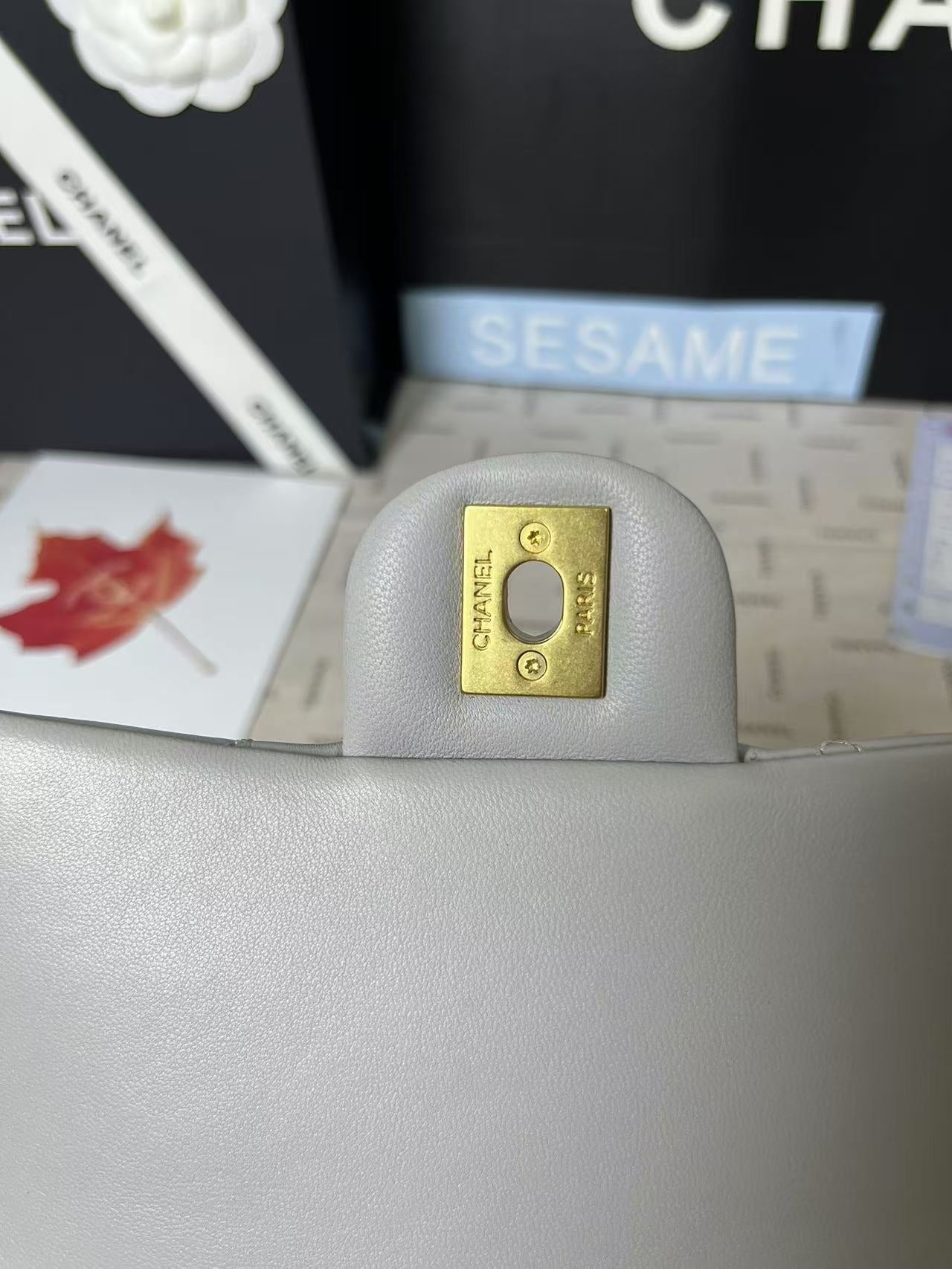 25C Mini Flap 19cm Grey Lambskin Gold Heart Hardware