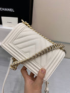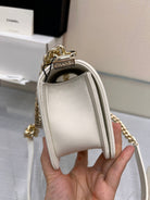 BOY BAG SMALL 20 WHITE CHEVRON CAVIAR GOLD HARDWARE
