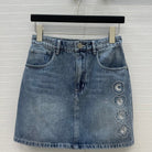 CC 25 Embroidered Short Skirt Blue Denim Cotton