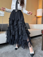 CC 25 Mesh Long Skirt Black Polyester Fiber