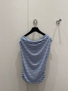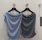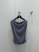 CC 25 Striped One-shoulder Short-sleeved T-shirt Cotton