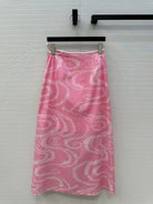 CC 25 Wave Pattern Long Skirt Pink Silk Cotton