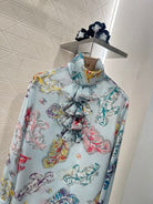 CC Long Floral Shirt Blue mix Colors Silk Cotton