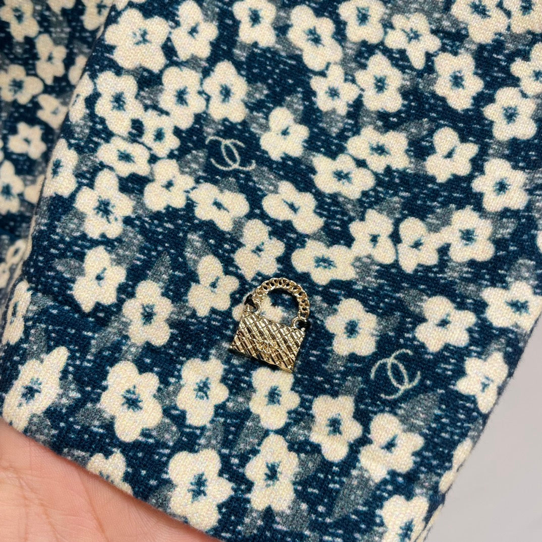 CC Beaded Flowers Shirt Dark Blue Cotton