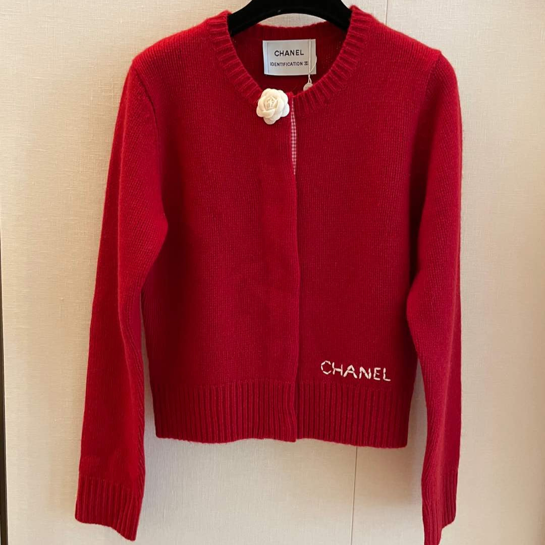 CC Hand-beaded Coco letter U-neck T-shirt Cotton