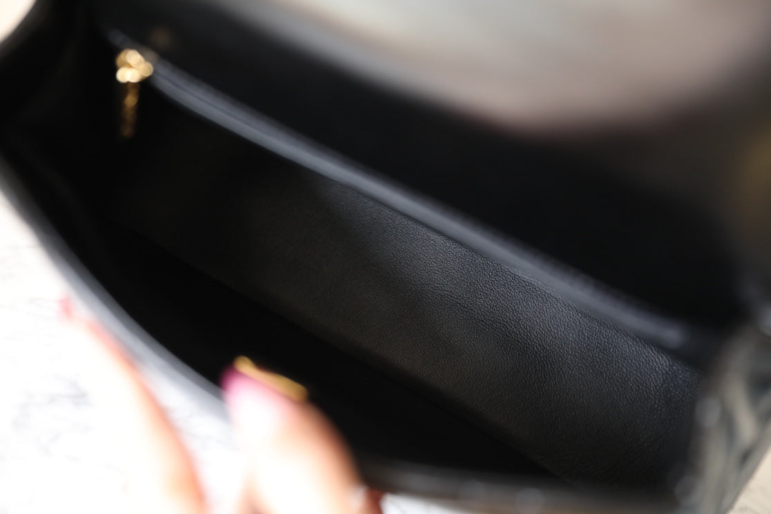 24B Small Flap Bag With Top Handle 25cm Black Lambskin