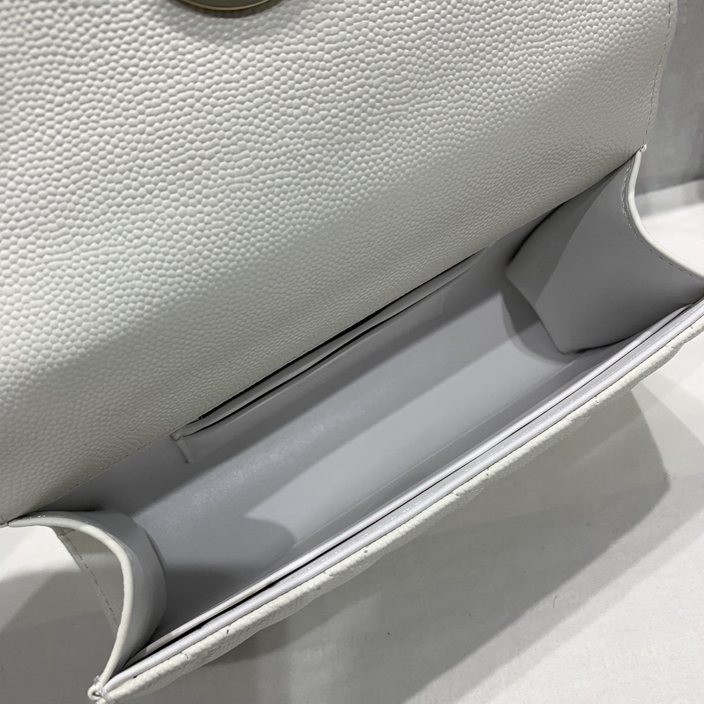 23P Flap Bag 15cm White Caviar Gold Hardware