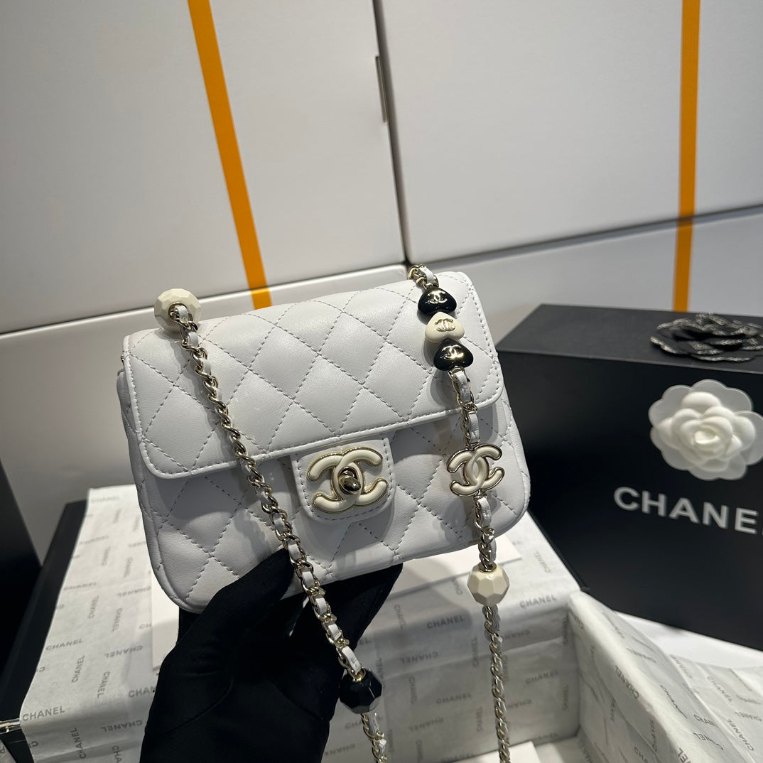 24a mini flap bag 19cm white lambskin pearl and gold hardware