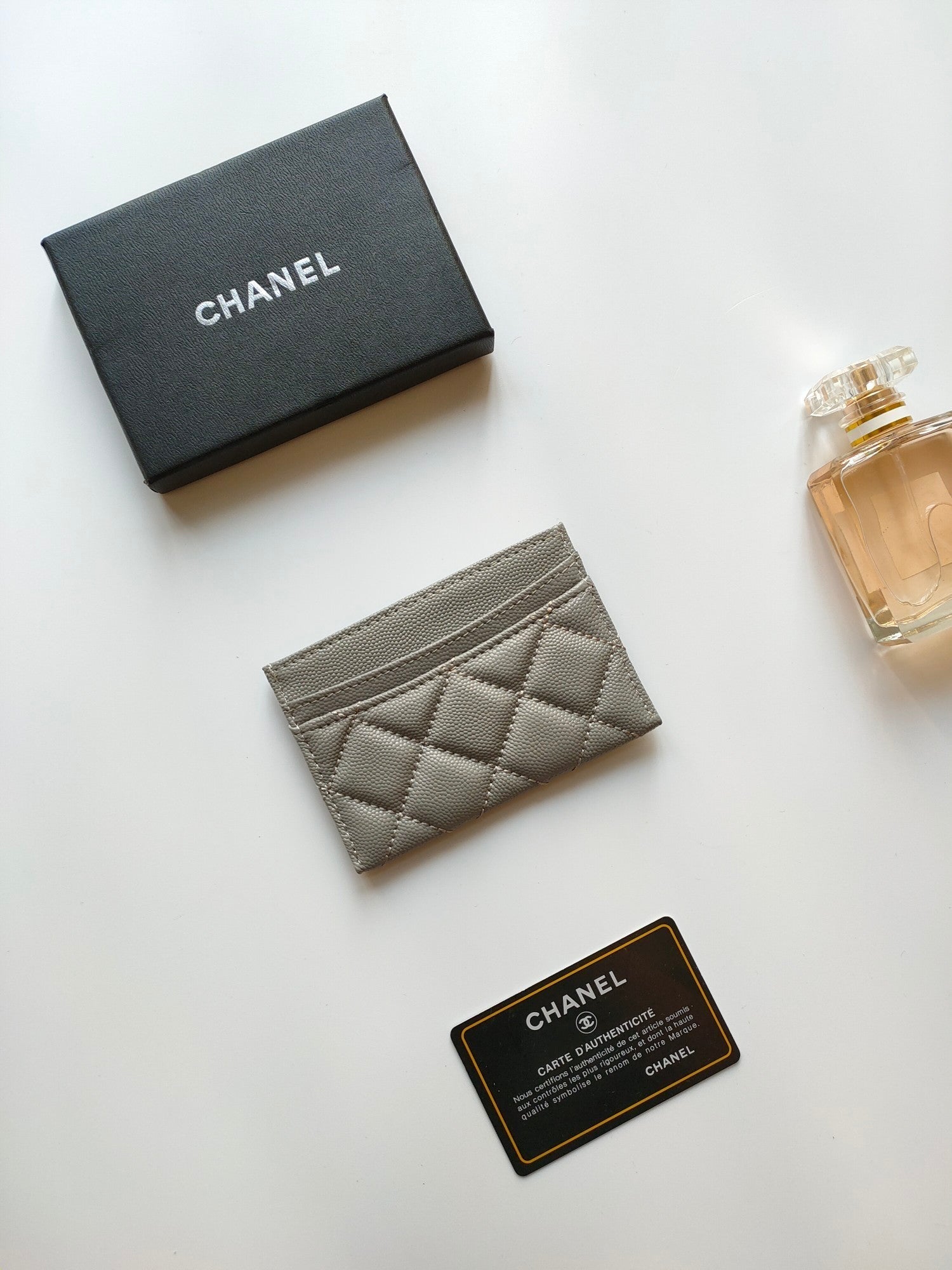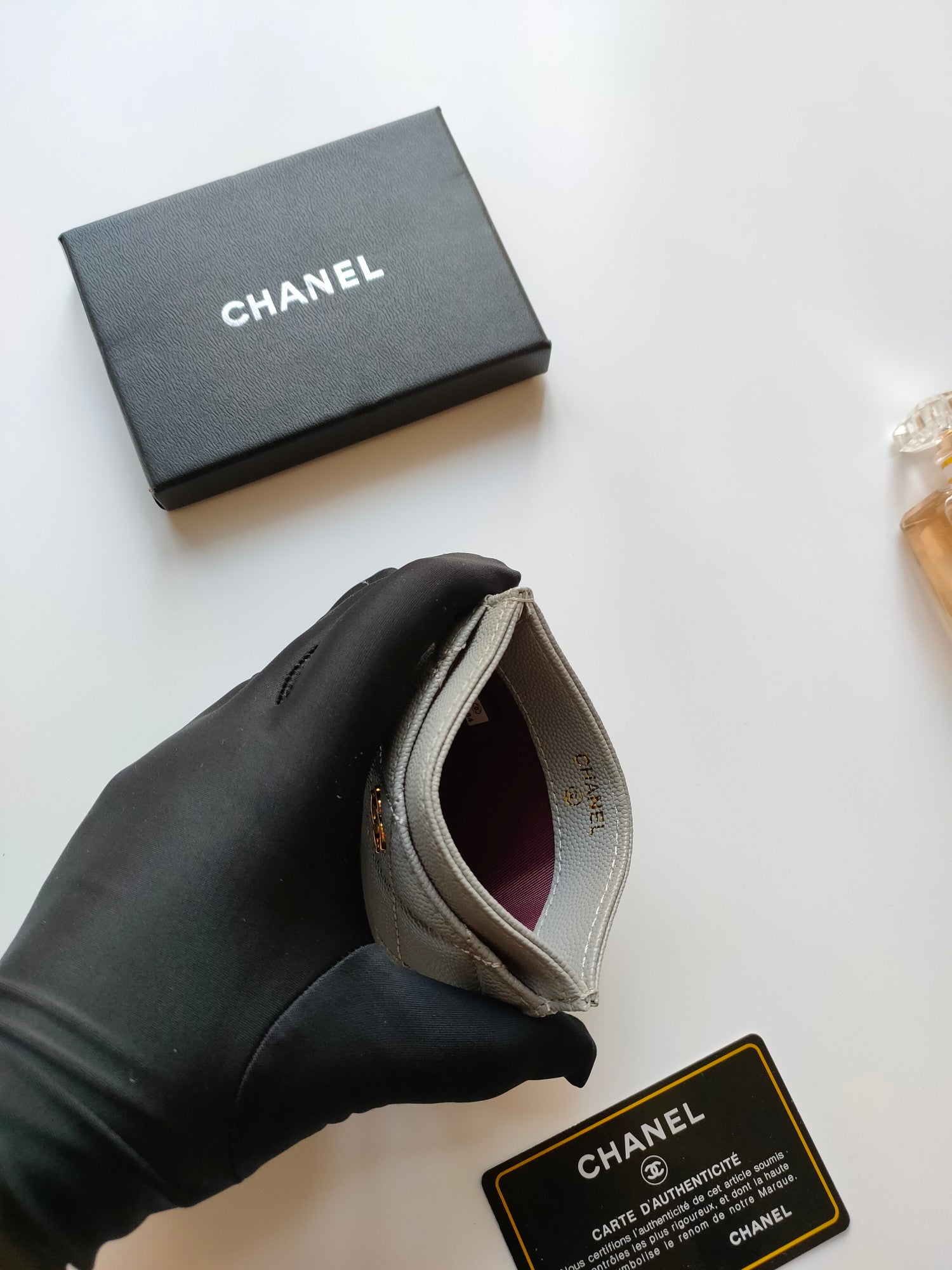 CC CARD HOLDER 11.2 GRAY GRAINED CALFSKIN GOLD ICON