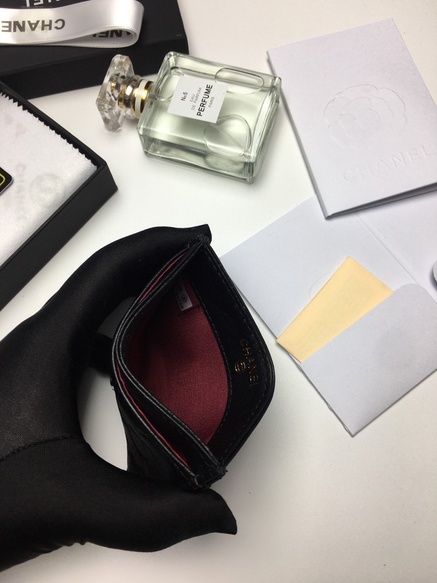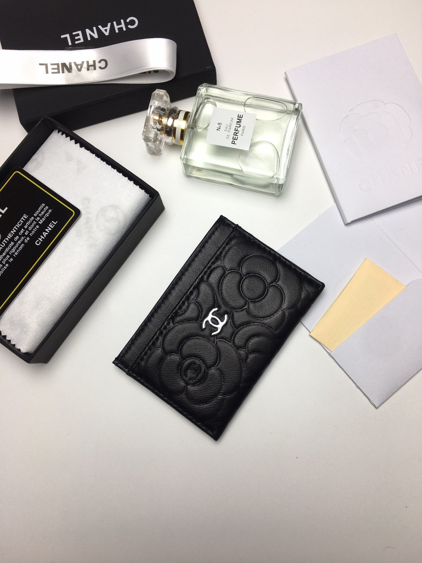 CC FLORAL CARD HOLDER 11.2 BLACK CALFSKIN SILVER ICON