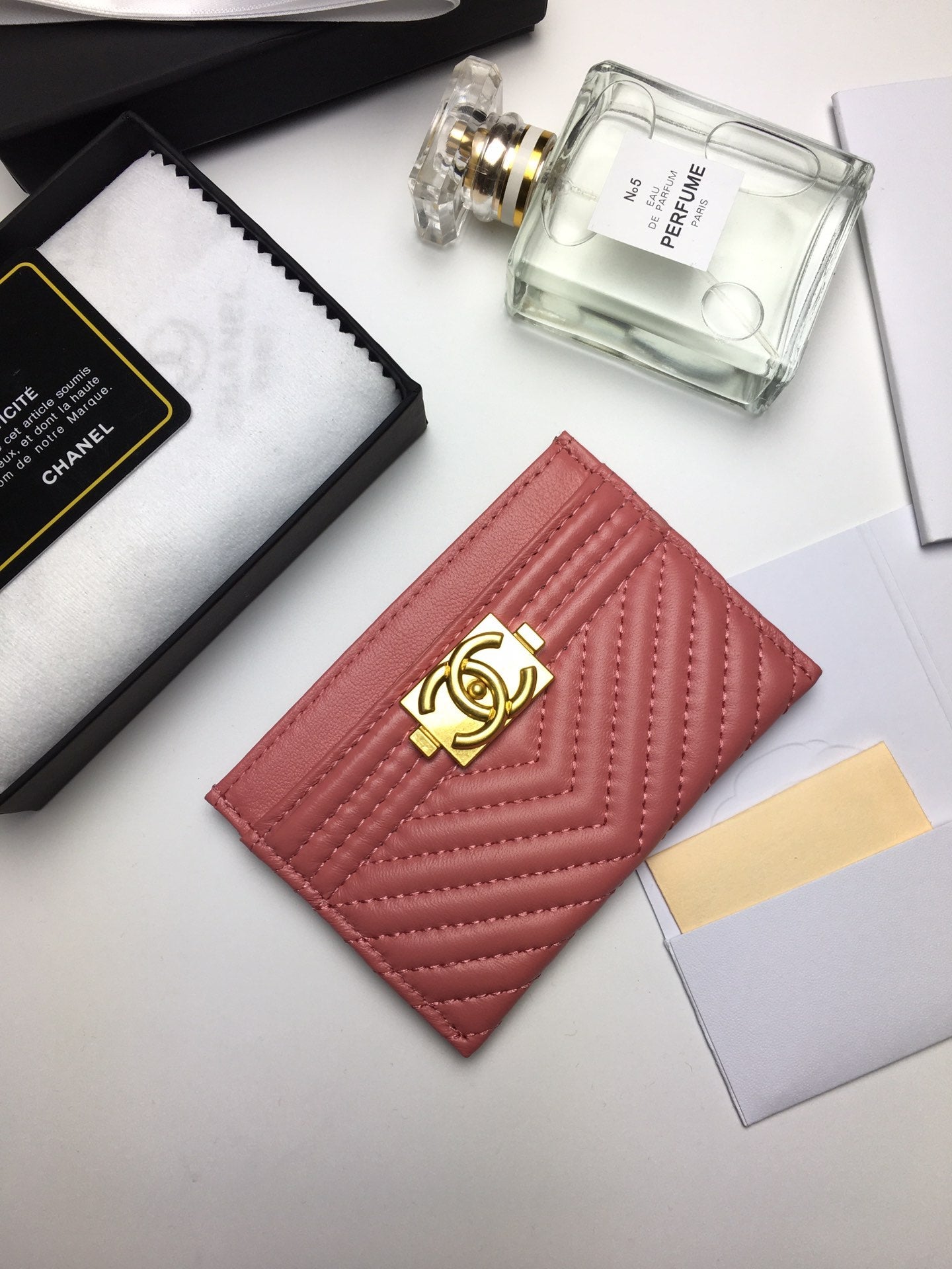CC LINE CARD HOLDER 11.2 CORAL CALFSKIN GOLD ICON