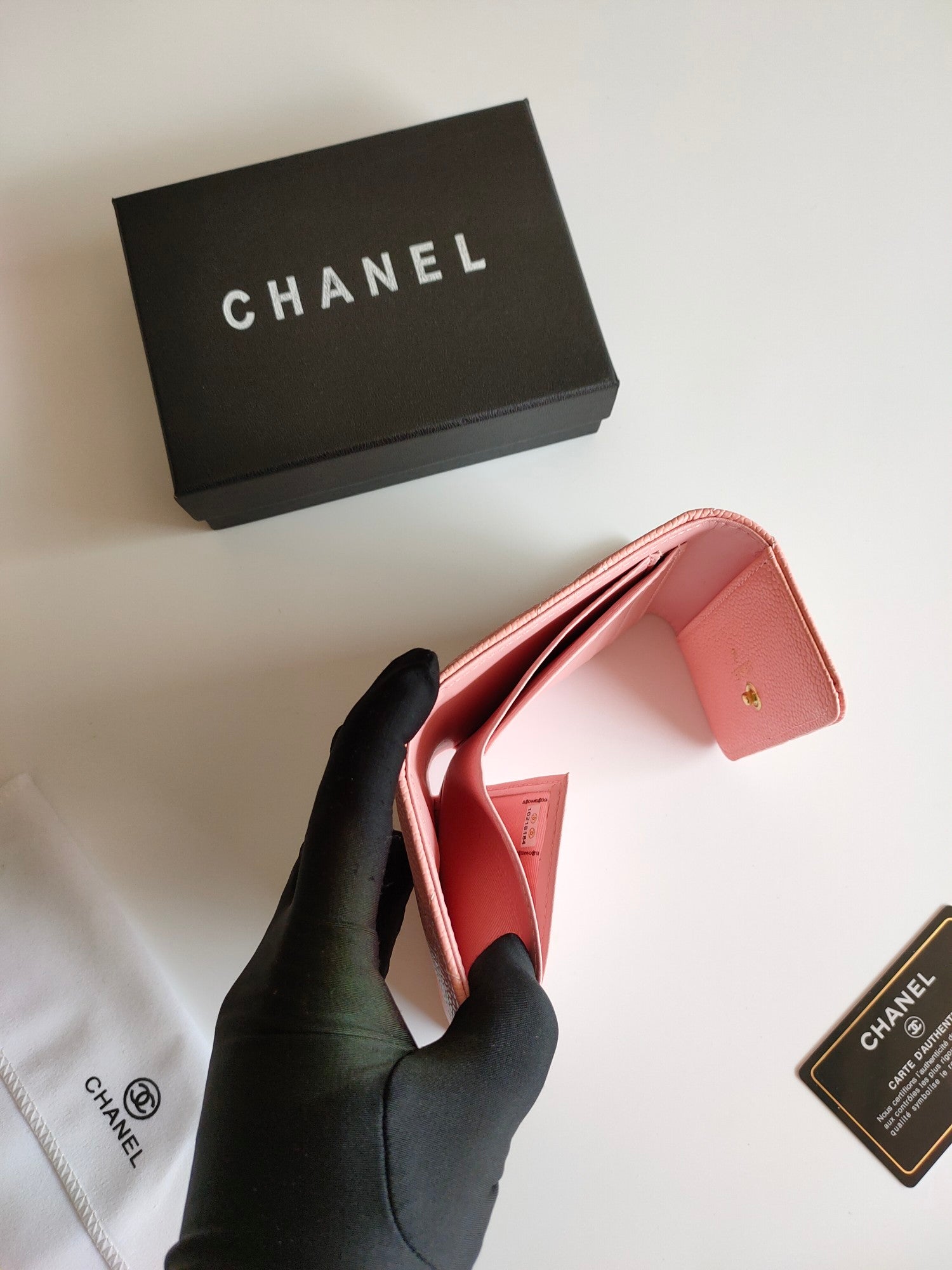 CC SQUARE PURSE 12 PEACH GRAINED CALFSKIN GOLD ICON