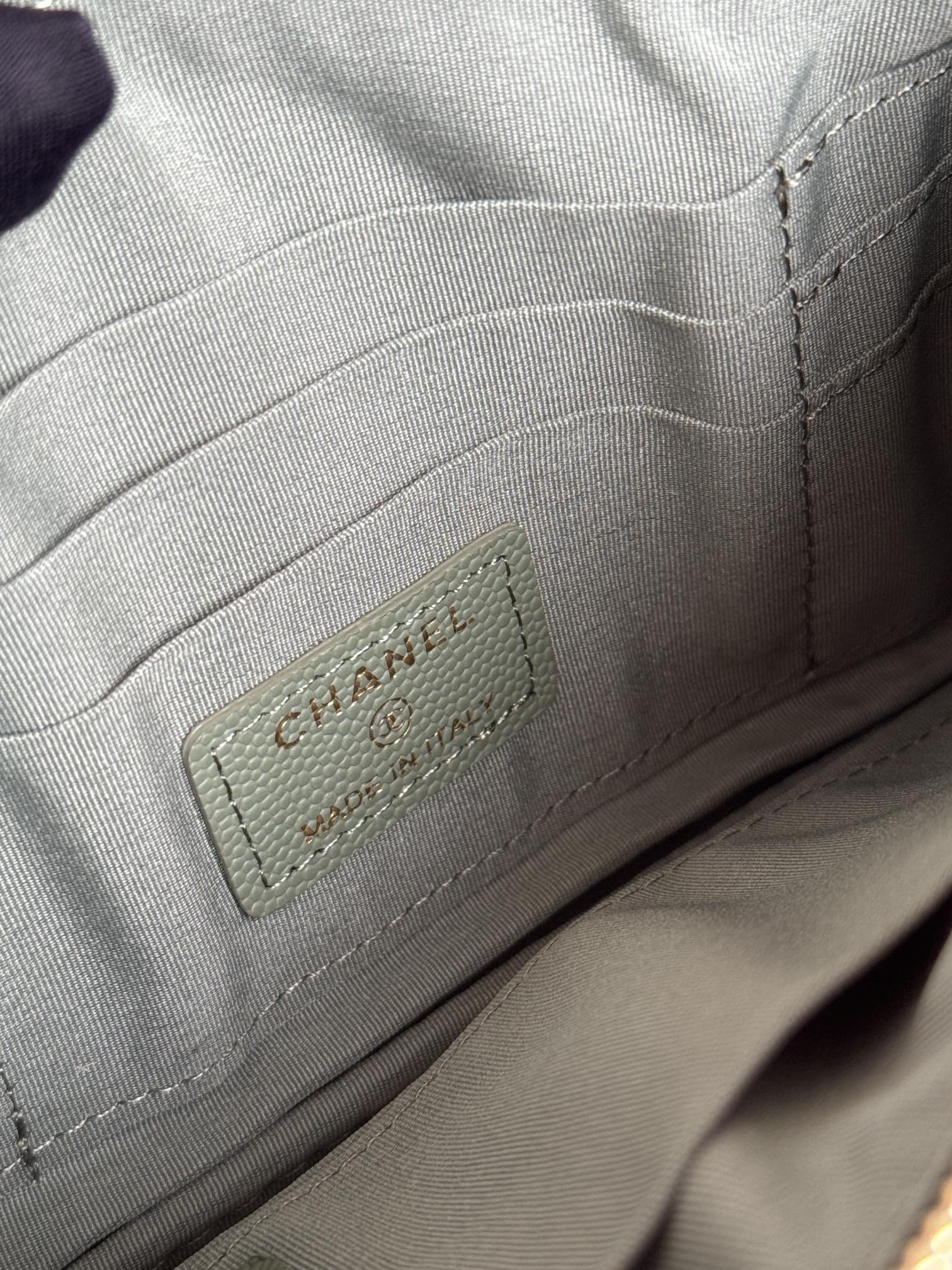 cc zipped wallet 20cm green quilted caviar gold hardware