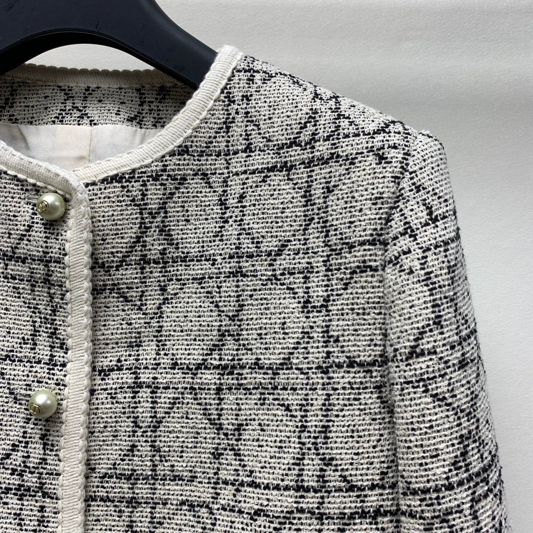 YSL Striped Two-piece Suit Beige mix Grey Linen