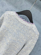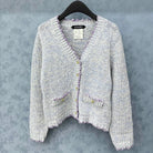CC 2025 V-neck Cardigan Light Gray mix Purple Wool 325879