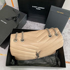 LOULOU MEDIUM 32 BEIGE QUILTED LEATHER SILVER HARDWARE