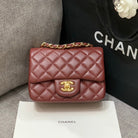 MINI SQUARE FLAP BAG 17CM BURGUNDY LAMBSKIN GOLD HARDWARE