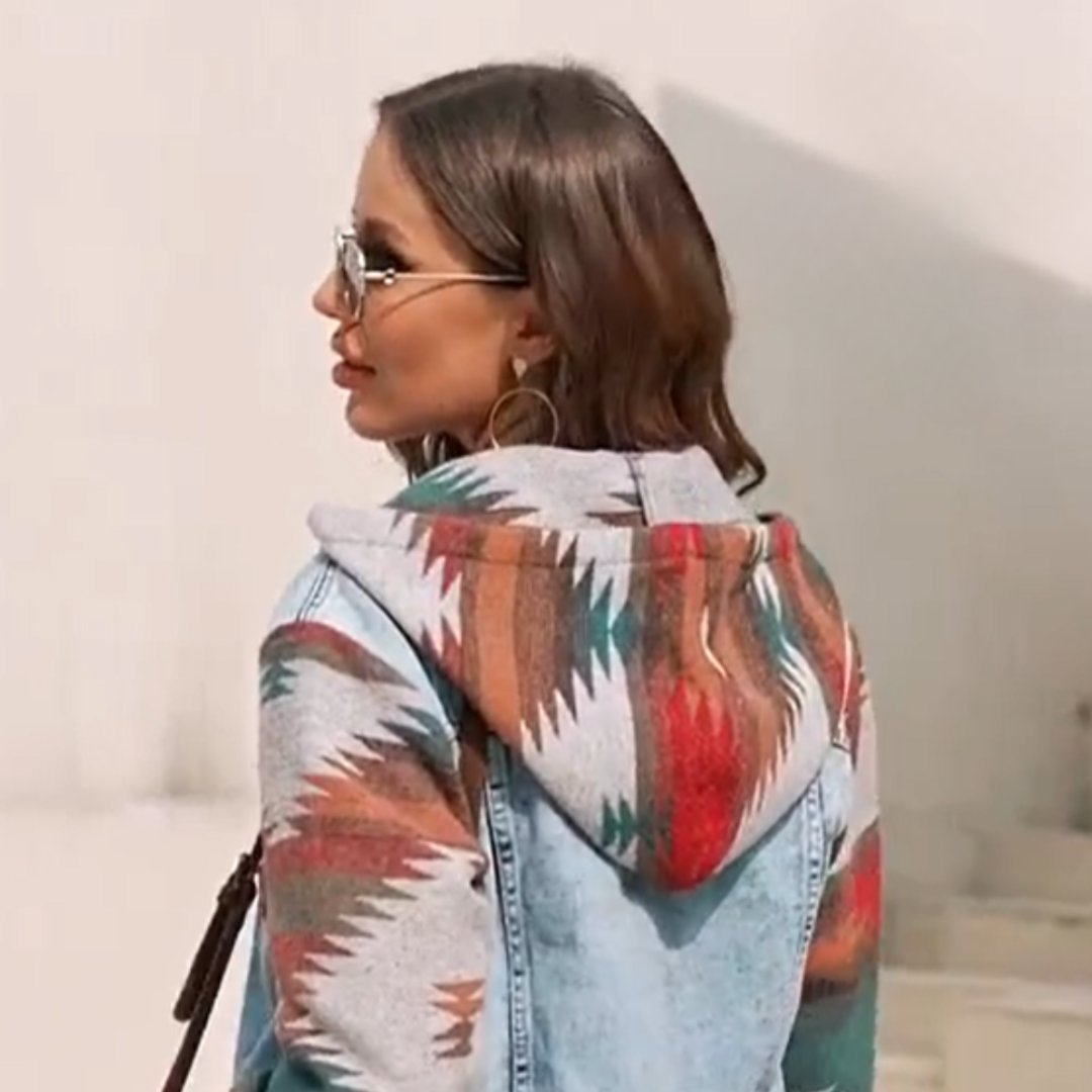 Verpassen Sie nicht die Gelegenheit, Ihre Garderobe mit dieser trendigen Jeansjacke mit Aztekenmuster zu bereichern. Sie ist die ultimative Kombination aus Mode, Komfort und Strapazierfähigkeit - ein Muss für jede moderne Frau, die auf der Suche nach dem gewissen Extra an Stil in ihrem Leben ist.