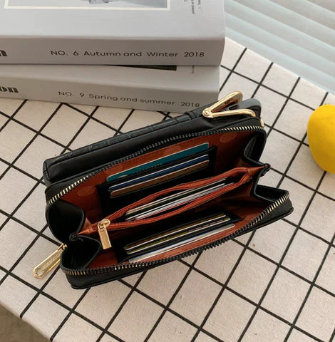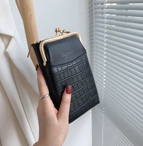 Entdecken Sie Komfort und zeitlosen Stil mit der München Telefontasche™ - ein 2-in-1-Wunder, das Ihr Leben vereinfacht, indem es eine breite Geldbörse und eine Handytasche in einer schicken Crossbody-Tasche vereint. Die Tasche ist leicht, kompakt und aus hochwertigem, weichem veganem Leder gefertigt.