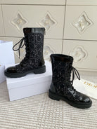 CD D-Unit Ankle Boot In Black Tweed Fabric And Glossy Cowhide 105086