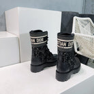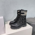 CD Major Ankle Boots Black White Calfskin And Fabric Canvas
