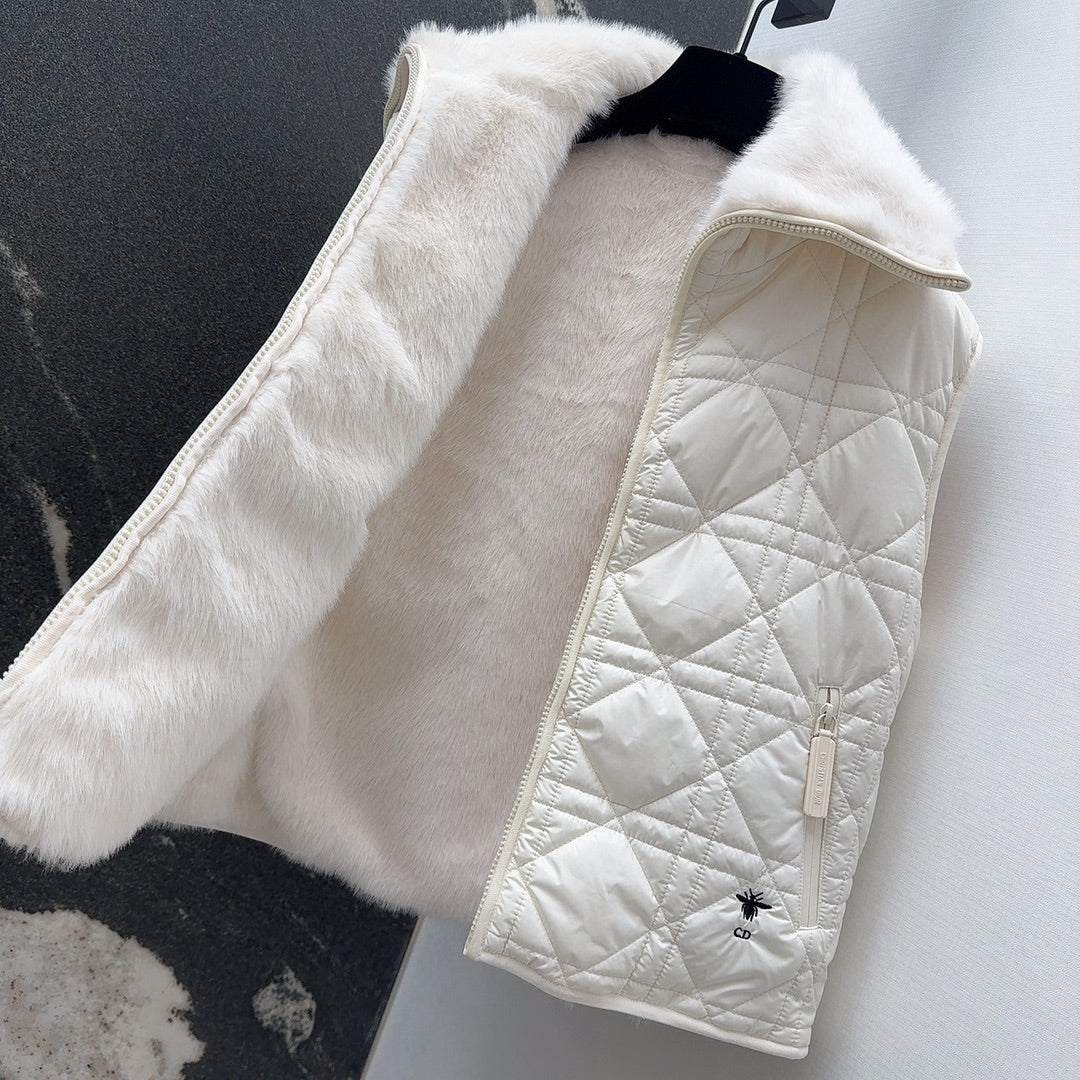 CD 25 Hooded Vest Leather And Fur Ivory White