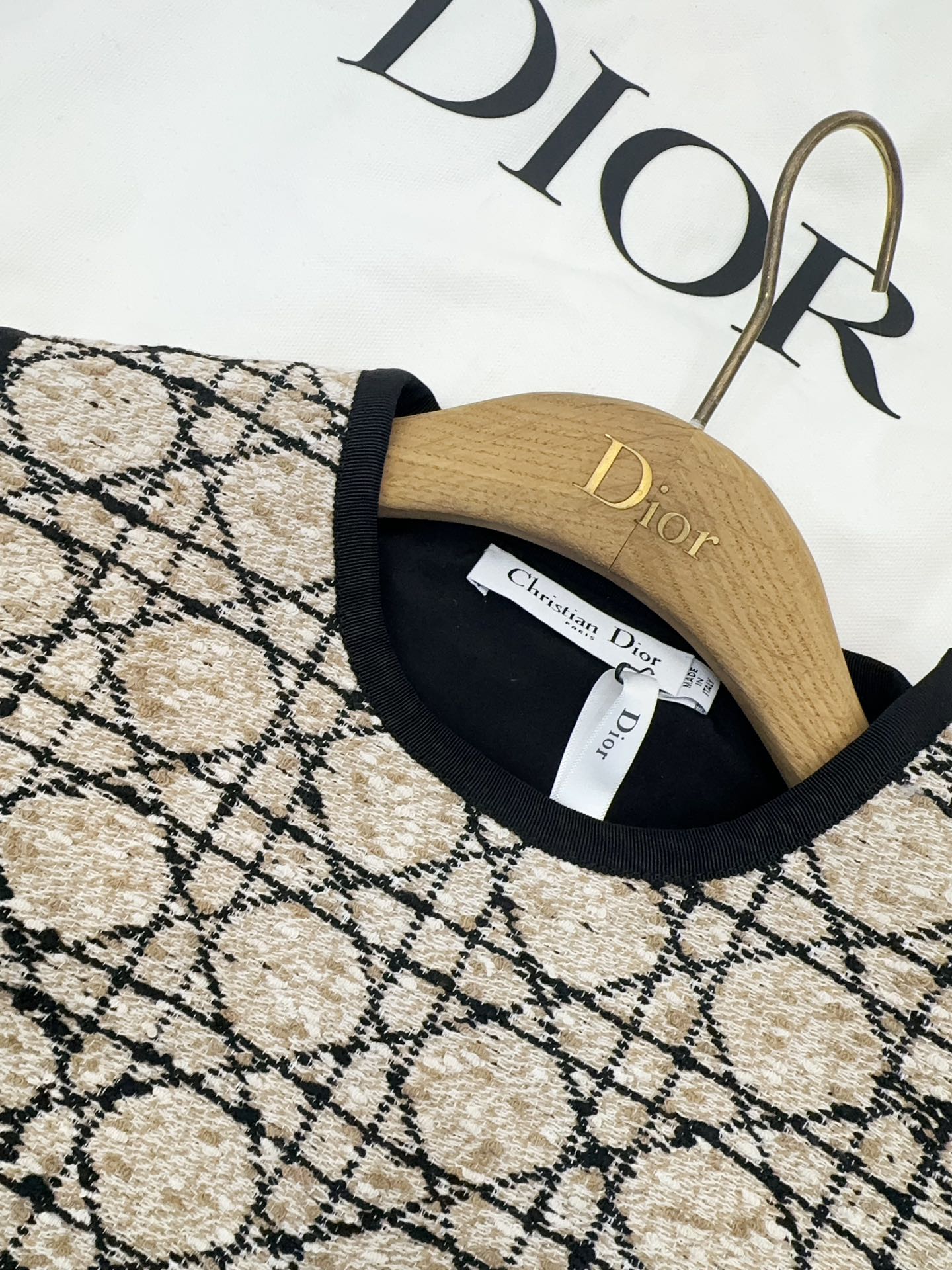 CD 2025 Plaid Dress Beige Cotton