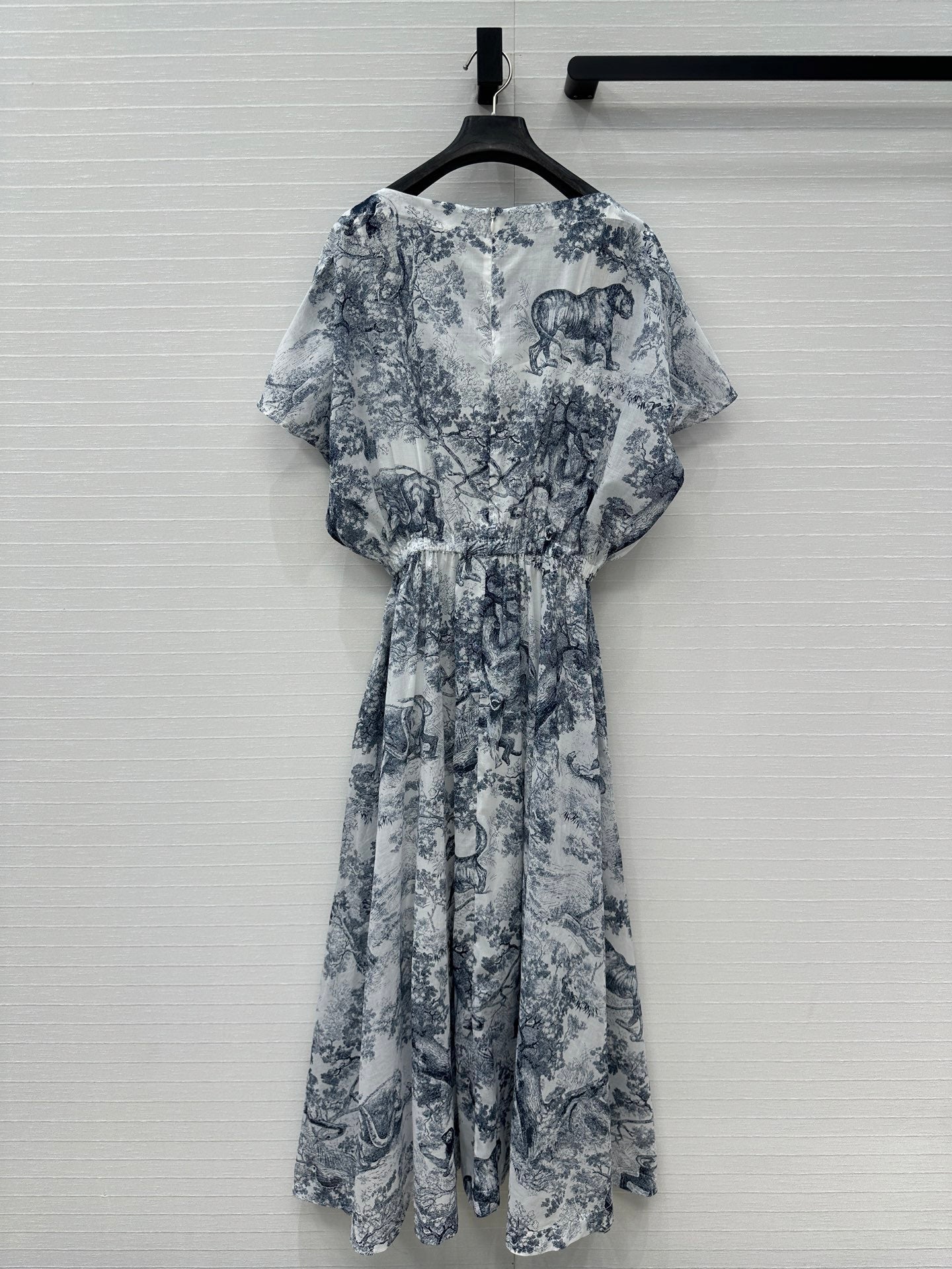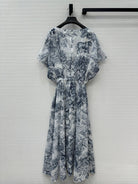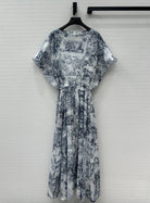 CD 25 Boat Neck Long Skirt Blue White Cotton