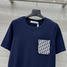 CD 25 Knitted Short-sleeved Top Blue and White Cotton