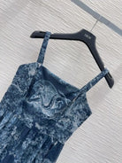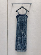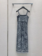 CD 25 Print Suspender Skirt Light Gray and Navy Blue Polyester