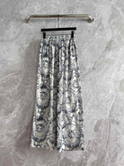 CD Sun God Printed Wide Leg Pants Beige Blue Cotton