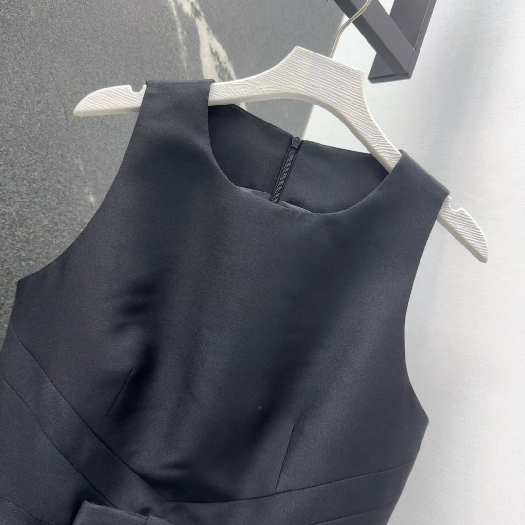 CD 25 Bow Sleeveless Mini Dress Black Satin
