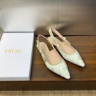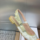 JAdior Slingback Flat White and Gold-Tone Toile de Jouy Mexico Embroidered Cotton with Metallic Thread