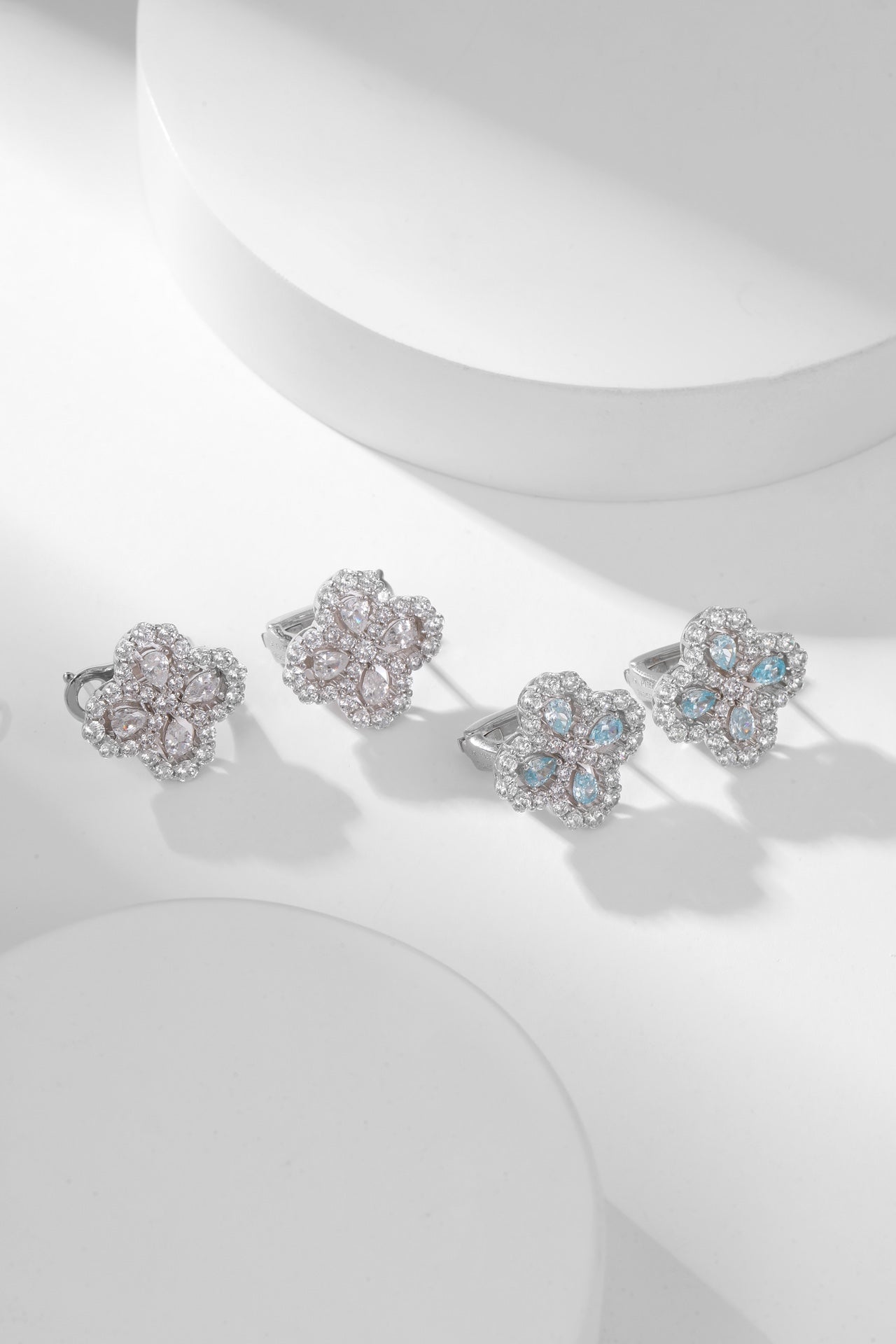 LOOP FULL DIAMOND MOTIF SILVER EARRINGS