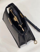 PEEKABOO ISEEU 27 IN BLACK SMOOTH CALFSKIN WITH WOVEN TRIM GOLD HARDWARE