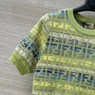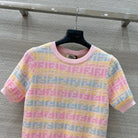 Fendi 25 Knitted Short-sleeved Top Green Pink Wool Cotton