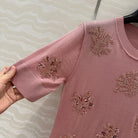 Fendi Beaded Flower Knitted Dress Pink Wool