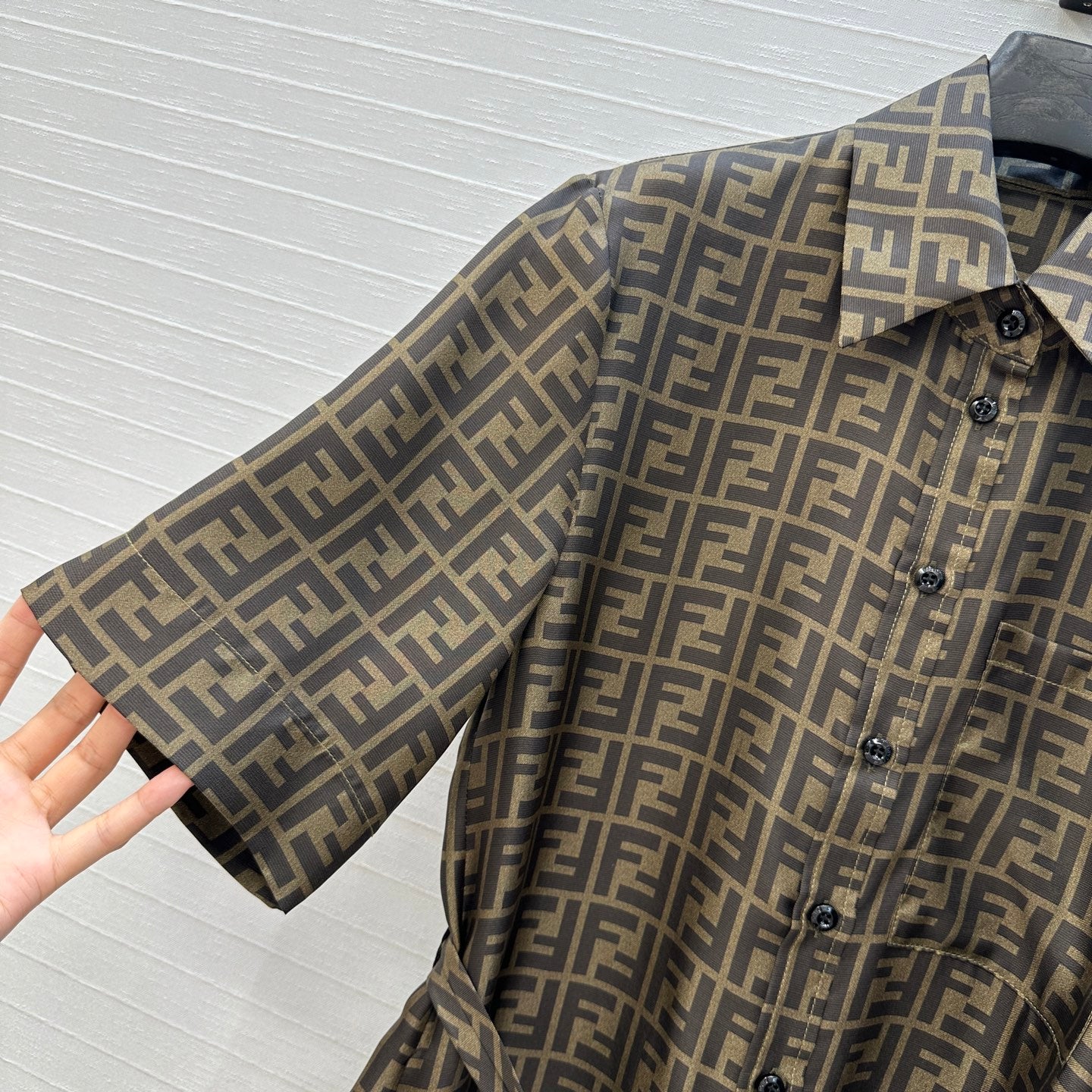 Fendi 25 Shirt Dress Khaki Silk