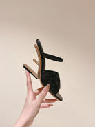 FENDI FIRST HIGH-HEELED SANDALS 85 MM IN BLACK LAMBSKIN GOLD HARDWARE