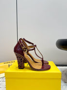 FENDI HIGH-HEELED 10 CM IN SANGRIA RED GLOSSY LAMBSKIN WITH GOLD HARDWARE