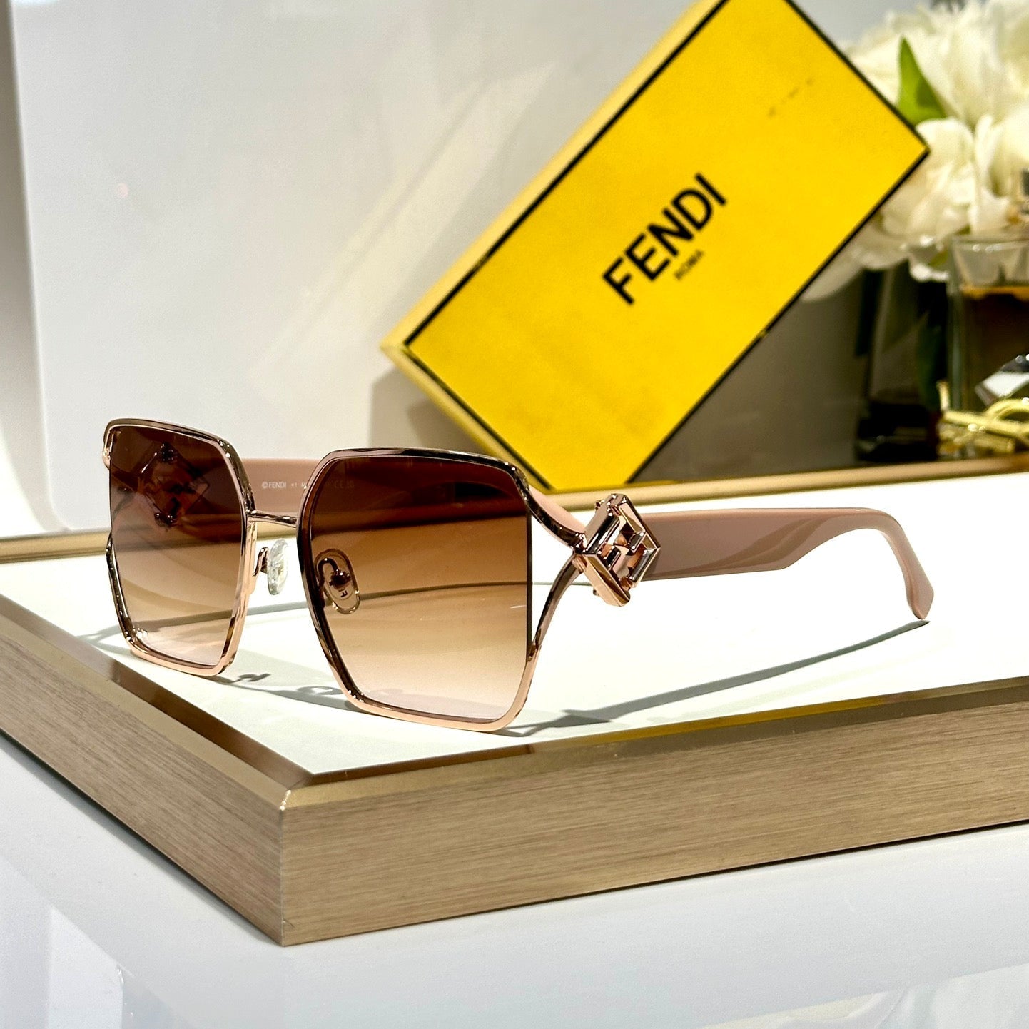 OVERSIZED FF DIAMONDS SQUARE FRAME SUNGLASSES FE40151U IN METAL