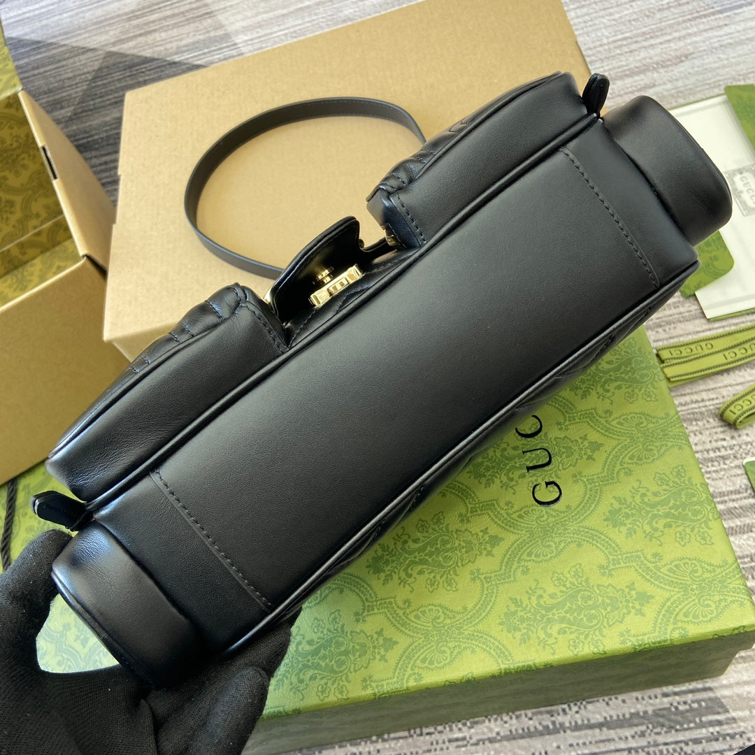 MARMONT SMALL MULTI-POCKET BAG 25 IN BLACK CALFSKIN GOLD HARDWARE