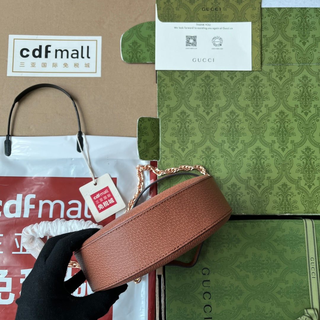 OPHIDIA MINI ROUND SHOULDER BAG 18 IN BLUSH PINK CANVAS AND BROWN LEATHER TRIM