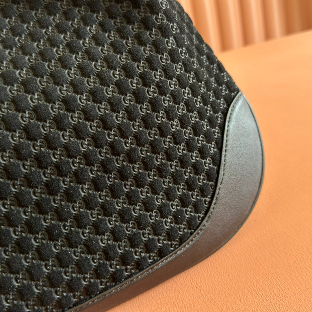 Gucci Body Double Lock Handbag Black Velvet Embossed Leather 248133