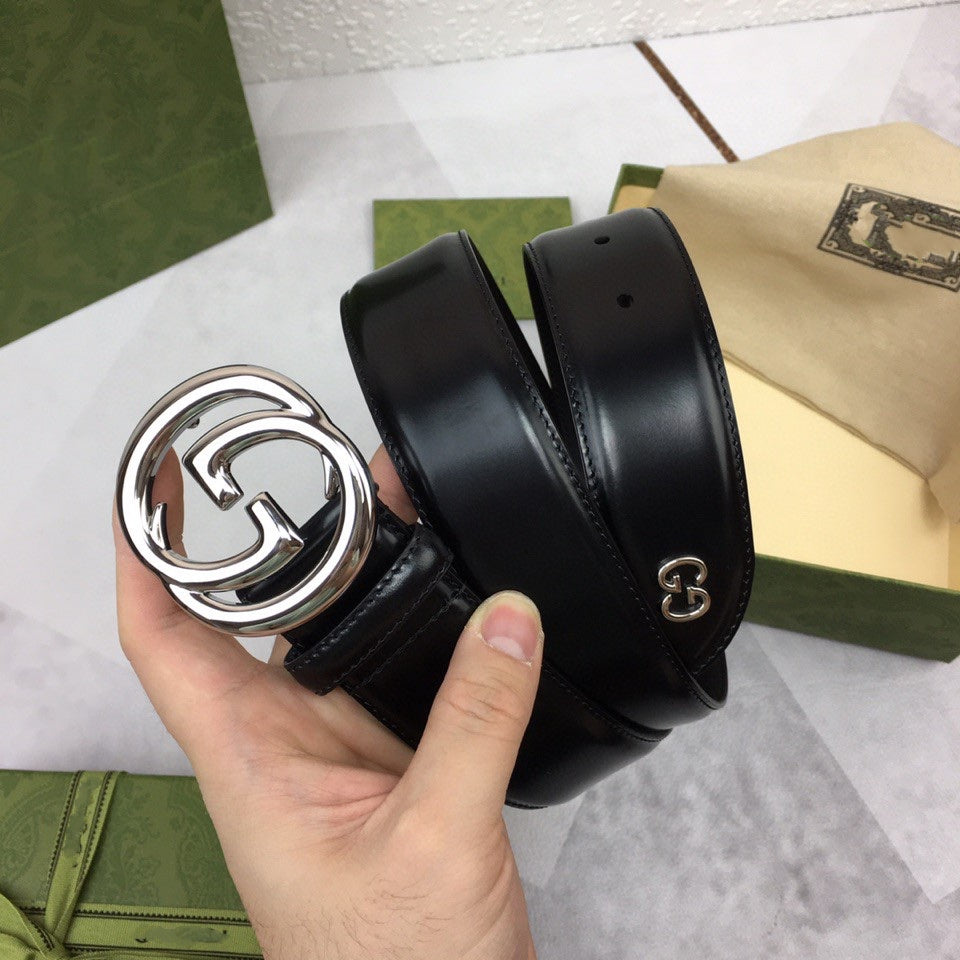 GC BELT SILVER BUCKLE BACK LEATHER 4.0CM