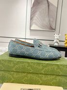 MEN'S LOAFER WITH HORSEBIT IN SAPHIRE BLUE MONOGRAM JACQUARD FABRIC