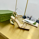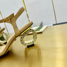 MEDIUM-HEEL SANDAL IN TAN BEIGE CALFSKIN WITH RHINSTONES