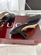 GC 2025 Double G High Heel Sandals Black Sheepskin 292469